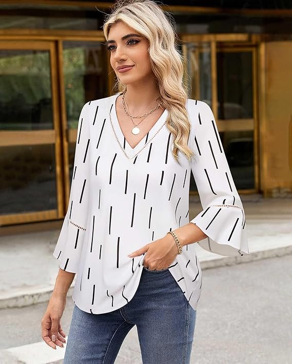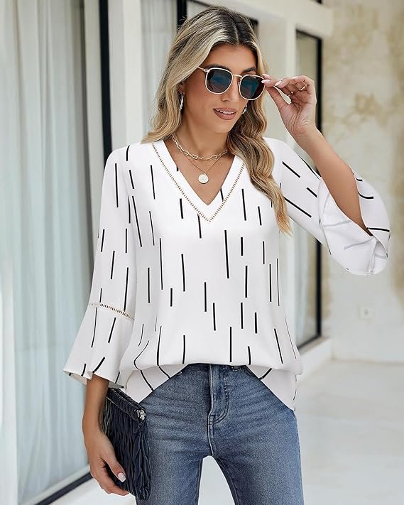 - Exquisite Hollow V-neck design: Fashionable and classic hollow V-neck, the hollow lines on the front of the collar overlap to form a V-neck, which enriches the overall layering of the top, breaks the dullness and boredom, and enhances the charm of women. Simple and stylish V-neck shirt, whether you’re going for a fashionable office look, add bright colors to your commuting style, or going for a basic casual look, you can easily create your own fashion style.